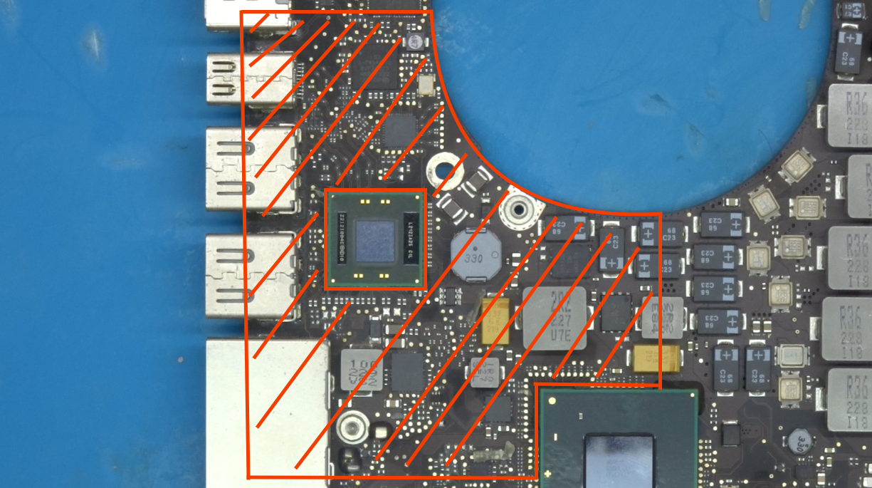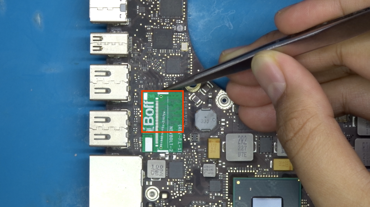 After you have successfully removed the TBT chip, you should see the line markings that we created just now.