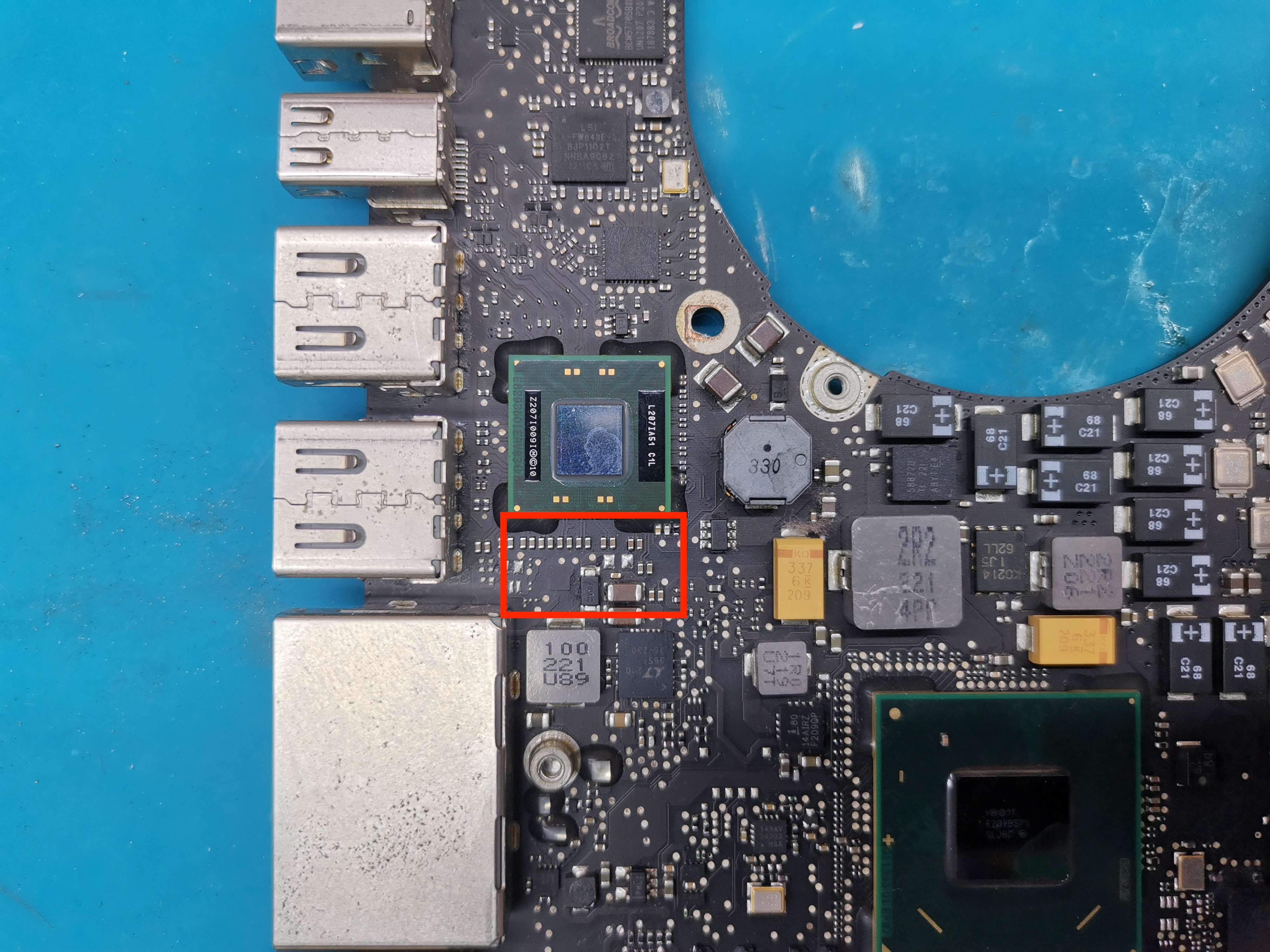 Next, find the U3810. You need to remove this Load Switch and create a solder bridge connecting both PP3V3_S0 & PP3V3_T29.