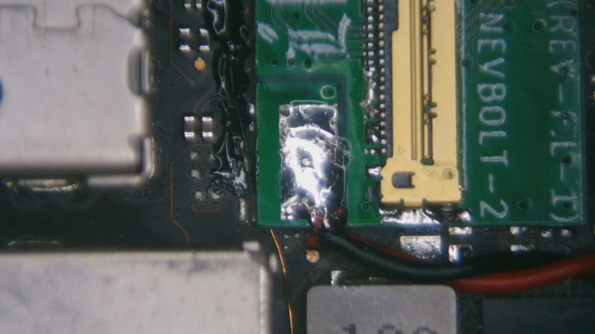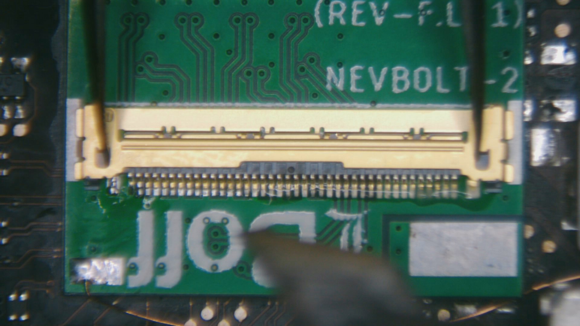 Now you can take the I-PEX female connector supplied from the Upgrade Kit, and you can solder it to the NevBolt-1 just like you solder the LVDS port for the LCD.
